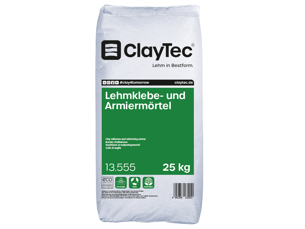 ClayTec hechtleem is een droog, fijnkorrelig kant-en-klaar mengsel en heeft een voor leemmortel nieuwe hoge drukvastheid van 3,9 MPa en een hechtvastheid van 0,85 MPa garandeert de ClayTec hecht-en wapeningsmortel de vastheid van de gehele constructie.