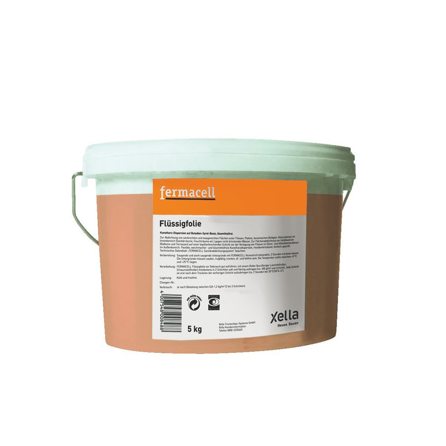 - De Fermacell vloeibare folie is een hoogwaardige afdichting tegen vocht, een in vloeibare vorm aangebracht waterdicht membraam voor gebruik onder keramisch tegelwerk, marmer en natuursteen.